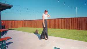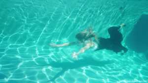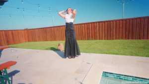 Kate is by the pool wearing a stunning black and white satin dress and black high heels. She first shows off her dress while dry, which is already nic...