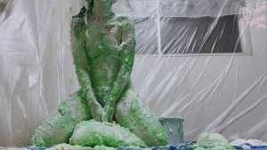 Continuation of part 1. I'm already completely covered in white substances with my long brunette hair down and super messy. I introduce some vibrant...