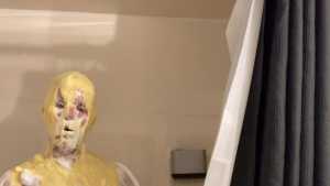 | A sexy secretary arrives home after a long day at work and tries to relax with cakes covering her beautiful feet and sensual curves. She completely covers her hair and face, a... report | |