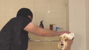 | Thomas is in great shape and starts dousing himself with bottles of water. His white shirt becomes very see-through due to the wet look, and his body shines through, making it... report | |