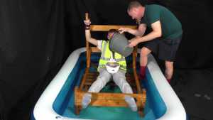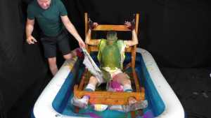 | Two great scenes, across which 3 hot guys, one a "Daddy," get slime after slime poured over their heads, all after having their bare feet tickled. report | |