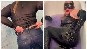 | Jeans and Long Sleeve Top In The Hot Tub New From Mistress Splash | |