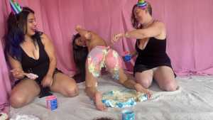 | Welcome Nedia! Vol 96 Nedia gets 18 pies in the face sitting and showing off her soles, cleans up and gets 20 pies in the face dancing and prancing. report | |