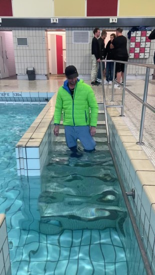 | I'm getting wet in a big baggy hoodie and big jeans in the pool! It's so cool it's bubbling! And I'm showing it to you! report | |