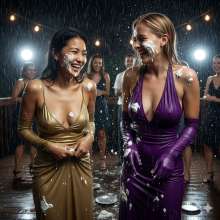 Diana spills soup all over herself in the kitchen! Then she goes into the shower and gets wet, showing us her wet panties! |