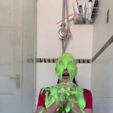 | Mila is back and she's lost a bet and it's time for her forfeit, 2 buckets of gunge and a few pies! The green gunge falls straight away covering Mila... | |