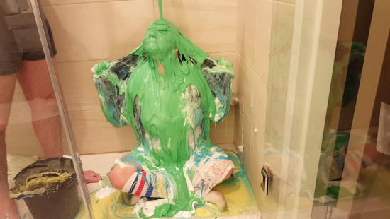 | Kaydens has a blast topless in her slime pit or wam bowl, this time with goopy green slime! Her blonde hair is quickly messy as the gunge is slowly poured all over her face f... report | |