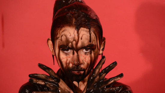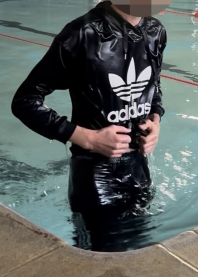 | Adele is dressed in a very sexy shiny black outfit that only covers one leg. She ventures into the mud with delight and sensuality. report | |