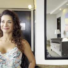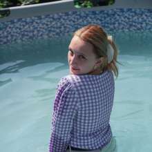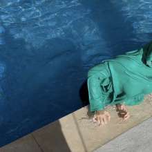 | The beautiful Mariela is hanging out by the pool wearing a sexy yellow satin dress and heels. She checks out the water temp and then she decides to go in after showing off her... report | |