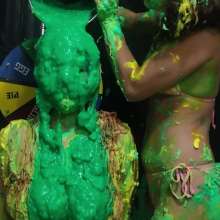 | Vol 112: Trixie's in the red. Trixie's back and shes seeing red on Valentines day and gets pied and ends up red, 50 pies used all in her face. report | |