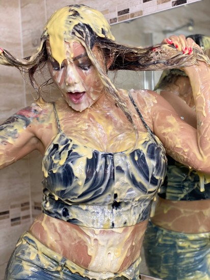 | Kaydens lays on the floor topless in her WaMbowl, ready for messy action! She gets a huge thrill from having her blonde hair get messed, so first off is thick and gooey, warm... report | |