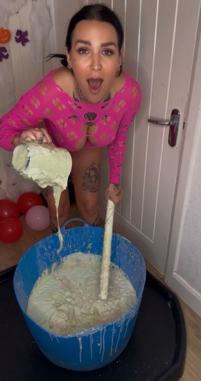 One of the best holidays out here is Halloween! Trixxi was primed and ready I her black tight bikini to make some pumpkin pies. Adding cake batter to...