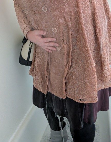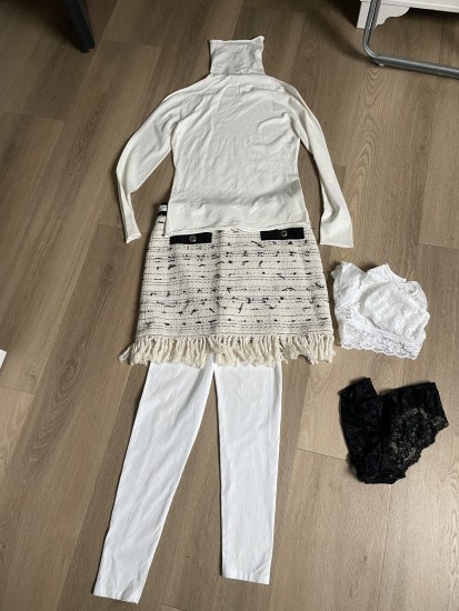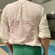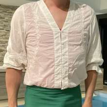 Kate is by the pool enjoying the morning sun before work. She is dressed in a sexy pant outfit with a corset, blouse and a jacket. She walks up and do...