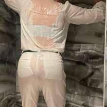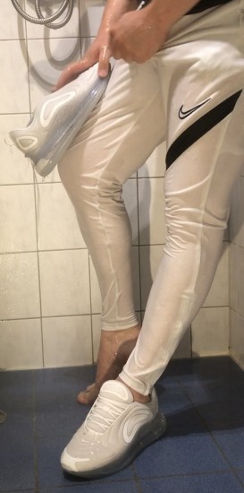 First I played on the bed in my skinny jeans, Adidas sneakers, and a sheer shirt! Then I went to get wet and dive into the bubble bath! No bra!
