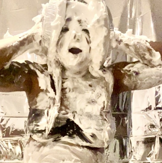 White shaving foam, gunge, and cream cheese in the first half and a generous topping of green gunge and sloppy foam pies in the second half. Both a lo...