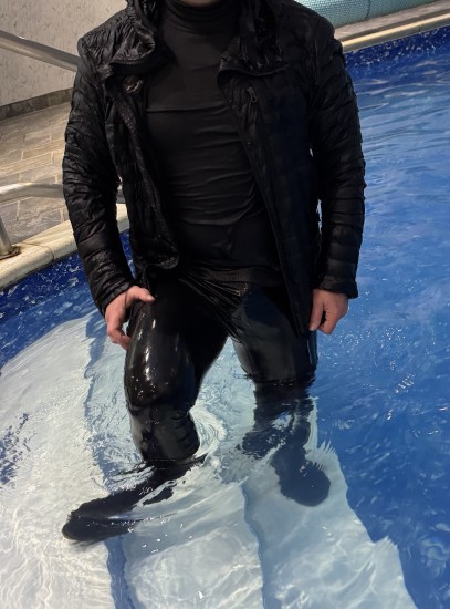 Ostin takes a great shower, dressed in a t-shirt and jeans. His t-shirt immediately becomes tight and shiny, the water soaks him completely, and he ev...