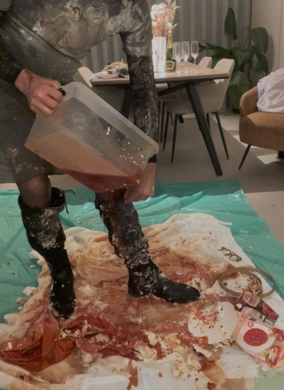 | In my living room, the red and black PVC dress gleamed, hugging my curves with a glossy sheen. Craving chaos, I grabbed two buckets brimming with green slime. With a grin, I p... report | |