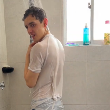 | As soon as he gets home, Ostin decides to take a big shower, keeping his jacket on. Underneath, he's wearing a fantastic t-shirt and his jeans. A tota... | |
