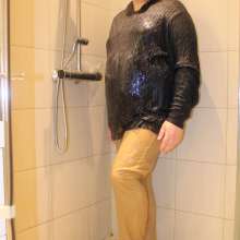 | Zaid is in great shape today, wearing his new gray shirt. What better way to show it off than in the shower? He's completely immersed in the water, wearing his jeans and belt... report | |