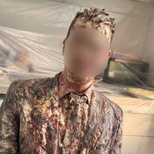 | Zaid takes a long shower for over 15 minutes, wearing a leather jacket with a green polo shirt underneath and jeans. The shower is extraordinary, and the wet look is a visual... report | |