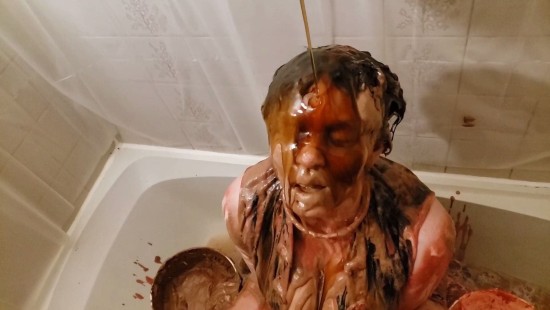| Aurel is naked and she puts on pantyhose, but only to be encased inside them. It's a mixture of water and mud on her... A very original than usual. | |