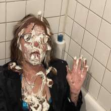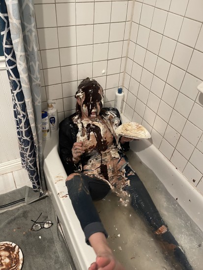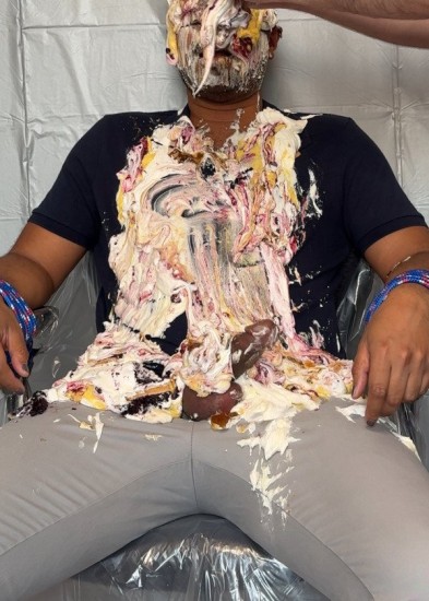 | Mike has 10 cool whip pies with his name on them. After hitting himself in the face with a pie and then sandwiching himself with 2 more, Mike starts to strip out of his shirt... report | |