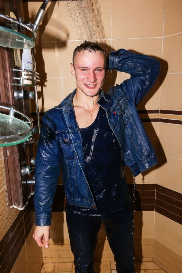 | Mike is really handsome and elegant in his dark blue shirt and belted pants. It gives us a super shower and a fantastic wet look. Always very wet, sexy as usual, he will show... report | |
