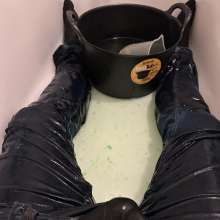 | Black Hoodie and Shiny Leggings In The Shower and Hottub New From Mistress Splash | |