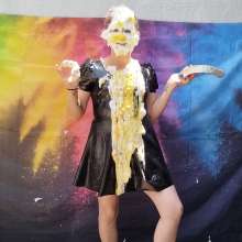 Surprised Thefetishgirl with a big sloppy cream pie to the face