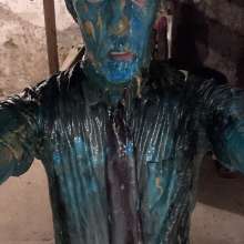 We play a game where I am given a small chance of escape, not that I want it although I need to make it look convincing as I'm embarrassed in front of everyone. I get two of the three questions right and I know the answer to the third but I decide to get it wrong on purpose. The hostess laughs and they count down and pull the leaver. The thick messy gunge engulfs me head to toe, my shirt, jeans, hair and feet are all covered in this green and yellow thick messy gunge and I absolutely love it. I'm sat dripping with gunge completely covered with a big smile and laughing, but now what am I going to do...