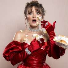 I must say I quite like the devilish look in her eyes as she's preparing to do *something* with that little pie . . .