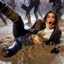 I totally get your particular fantasy within wam, my version is beautiful females in leathers: jacket (maybe over a low cut not necessarily leather top), trousers, boots, belt and definitely gloves, and accessories, and they can be messy (particularly food) but also I have really got into these girls in mud. Your pictures are outstanding. I have recently created a number of muddy female pictures using DreamUp AI and once I get the confidence I might post some of them in this group.