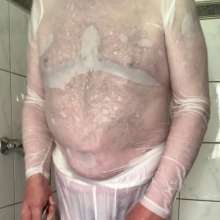fuck that looks well sexy blue sloshy stain in your long white pants