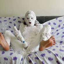 Another great shot of this sweet slapstick goddess overwhelmed by mess!