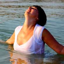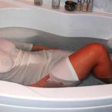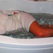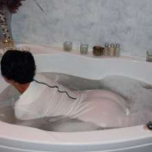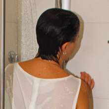 I have always love the look of partially wet and dry clothing, very sexy for sure, makes me want to splash you more to get them wet faster :)