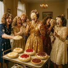 I love how the lady in maroon(?) 2nd from the right is gleefully about to pie herself.