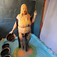 Wonderful outfit to be pied in! Love the way it displays your tits and crotch!