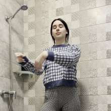Very sexy beautiful girl in soaking wet tight jeans and shirt love the shine