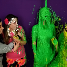 Another pair of perfect poses from The Wife and Melody, from their shocked expressions right down to their helpless hands. Also, naturally, Melody always looks completely FABULOUS when coated in slime!
