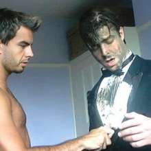 I remember these photos from way back. So very hot: Matt Jordan must be one of the most handsome men alive, and he always took a custard pie enthusiastically. Nice to be reminded of these classics.