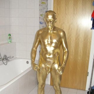 Photo: Behind the scenes muscle gold painting.