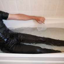 Aaahh...! You turn me on too when I see you standing in the bathtub with water with your wet black leather jeans!