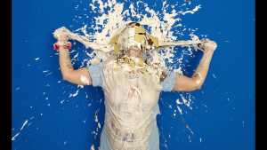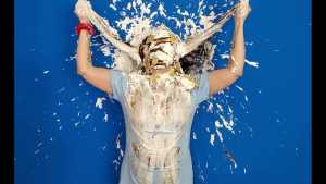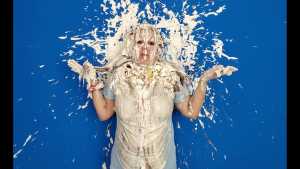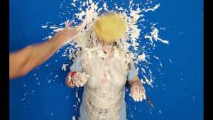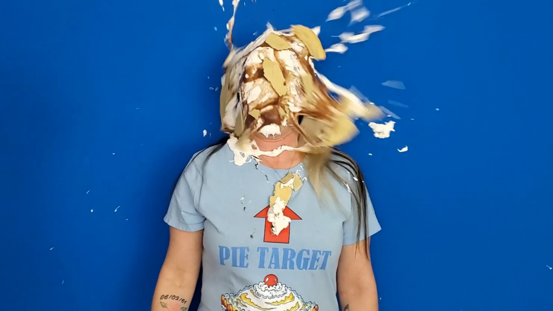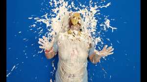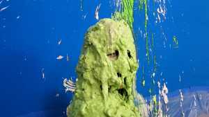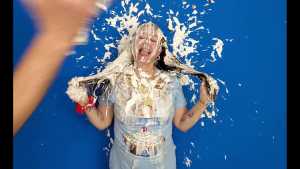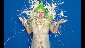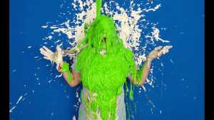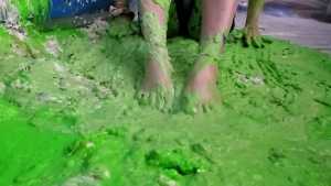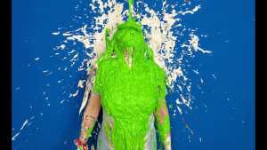 After footage includes some brief slime skating, the literal sound of thunder, along with messy socks and bare feet. Then, Kelli takes a seat for the producer to plop handfuls of mess into her hair over and over again while The Wife records.