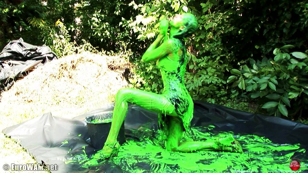 Adrienn is back, and this time she is wearing a sexy black skirt with a top and sandals. I think the green colour fits her outfit and her very well, and things getting hotter when she removes her clothes and show her sexy body covered with pudding. Enjoy!