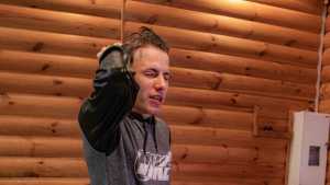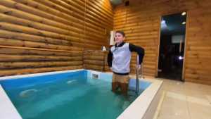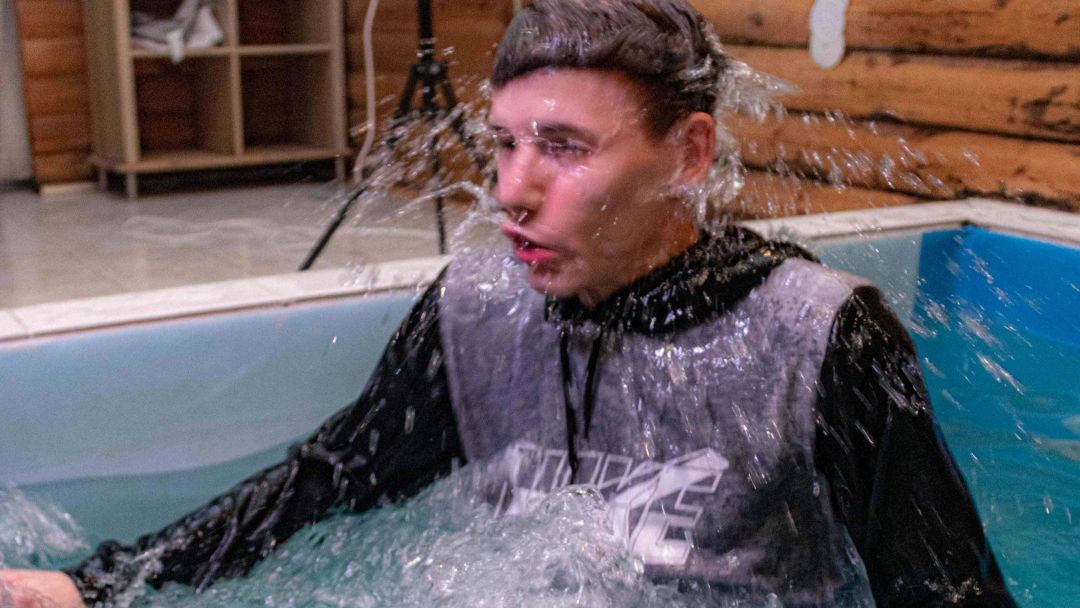 After that, I swam in the pool for a bit, got out of the ice pool and started taking off my wet clothes!  I squeezed them on my body, the water during the time I took off things became hot from my body!  I went to the side where the shower was located and warmed up perfectly there, showing how wet I was--because I took an extra shower, I also took off my shoes to show my wet socks and poured water from my shoes on myself after I filled their water!