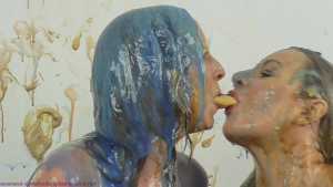 It's the zany, crazy, almost no rules game with dice rolls determining whether the contestant receives a messy item, has to strip, or has to take a "Just 5" challenge card to earn points. If they fail the Just 5 challenge... they get messy too. And they are pretty hard. With Elle already having made clear she didn't like getting messy, this led to hilarity as bad luck, and possibly some cheating from Bri and the off camera adjudicators, ensured Elle got way more than her share of messy forfeits. At one point Elle was told to give Bri a pie sandwich and she literally asked "What's a pie sandwich?" which just felt like a line from so many wam videos... but she literally didn't know