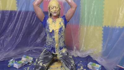 Axa and Chloe both bravely face the cold slime quiz, Axa in a little black PVC dress and Chloe in a purple PVC dress, both wearing tights. The gorgeous ladies try hard with the quiz but alas for them they do both end up completely splattered and slimy with all the thick, cold, clear gunge from above for every question wrong (so that is almost twenty slimings featuring in this vid, haha!) Includes bonus footage! Axa gets into the deep pool to keep warm and Ari agrees this is a great idea and joins in her little pink leotard in the deep slime pool. Axa and Ari are joined by Chloe after the quizzes are done and some very slimy wrestling, leotard filling, deep pool head dunking and general slippery mischief ensues when the gunged ladies bicker over who is to use the shower first.