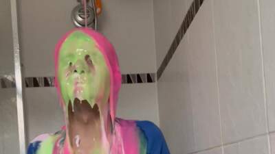Lots of fun with pies in the face, custard all over my head followed by a load of cream over my head! Also includes squirty cream down my leggings and some cold creamy custard down the back of my leggings, lots of fun and lots of mess!