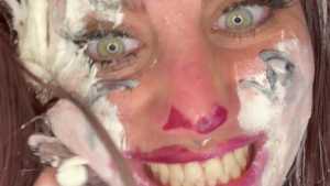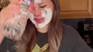 My interpretion, my recreation, my homage to Eliza's infamous and iconic viral video, but I'm a clowngirl, so... Here's the Clown Version. I made this during a time where I found her highly relatable and used it as cathartic expression. All love and respect for her. I still see a lot of myself in that original video. I committed to the bit. I drench myself fully-clothed in my kitchen with a bottle of water. You'll also find out that 2 + 2 does not equal what it used to... It actually means "cake in the face." Well... cupcake in the face.