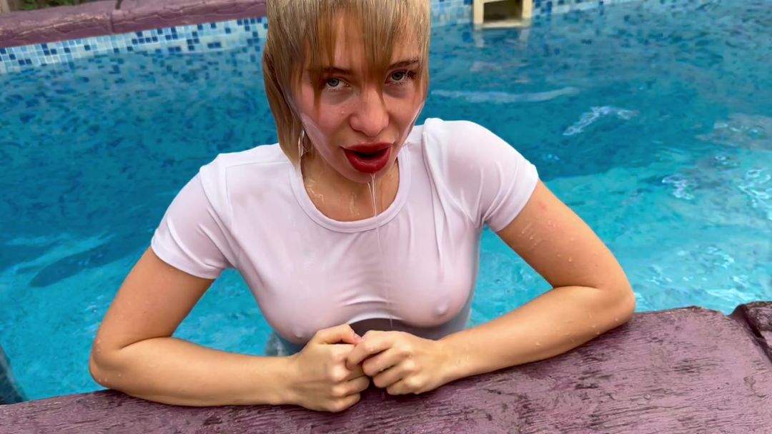 Wetlook and Dive in the Pool with Mask! Sheer Top, No Bra!